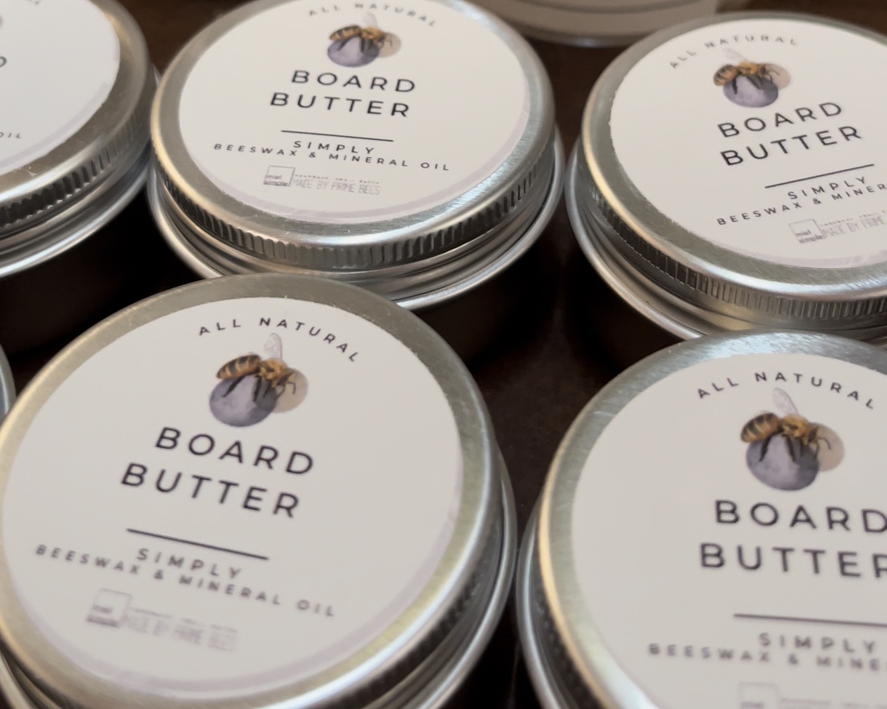 Simple product for polishing and protecting. Waterproofing with natural beeswax, food-grade polish, great for use on cutting boards, wooden household items, wooden toys, and more.  We do not ship at this time – shipping can be arranged for additional cost.